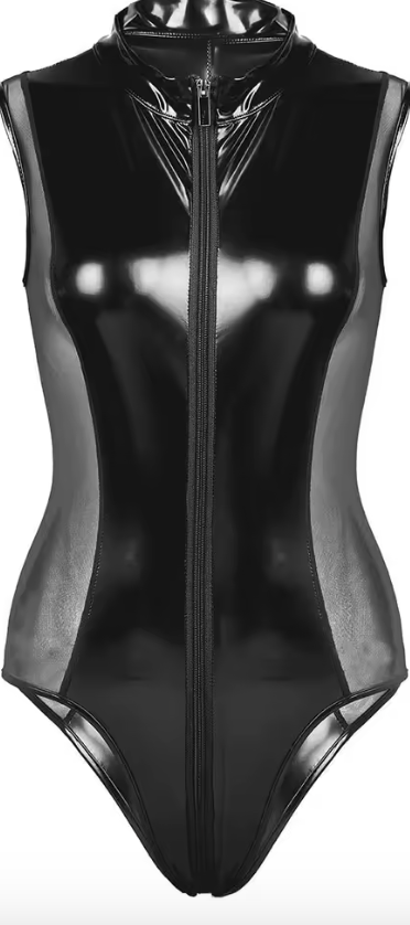 Sleek and striking, this wetlook lingerie bodysuit is designed to make a bold style statement. Crafted from a smooth, high-shine fabric, it hugs the body for a flattering, sculpted fit while offering comfortable stretch for easy wear.